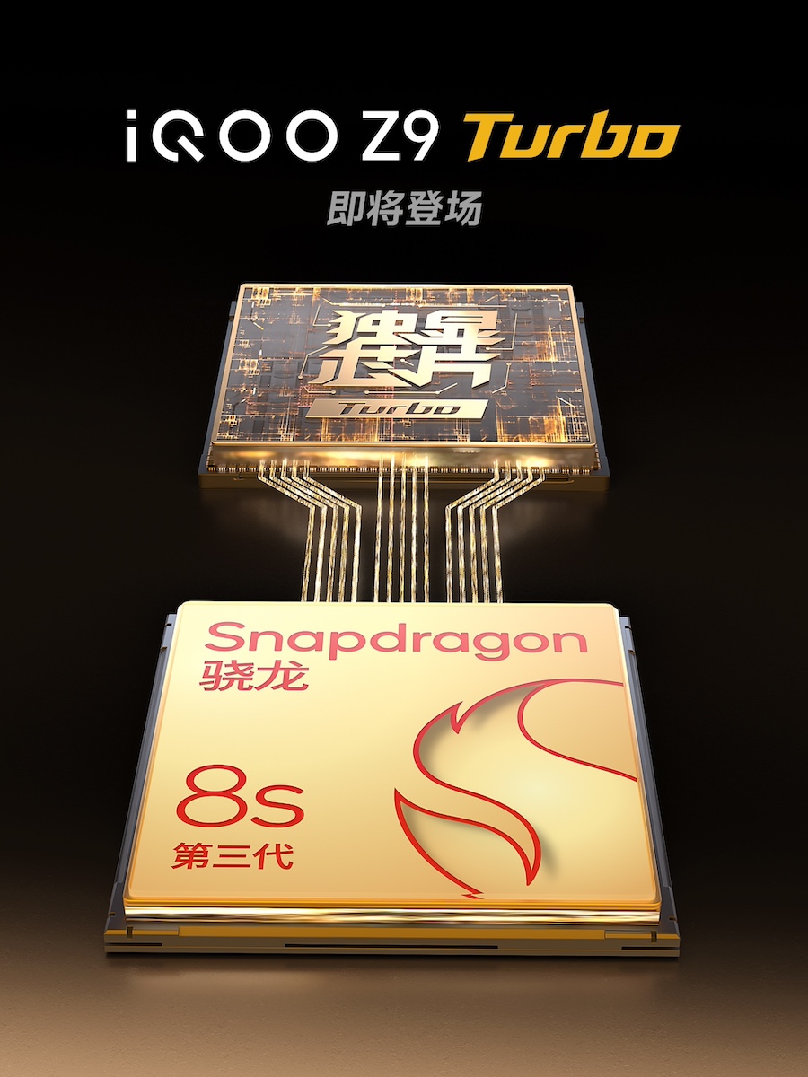 พร้อมกันนี้ iQOO ยังเปิดเผยว่า iQOO Z9 Turbo จะได้รับชิปประมวลผล Snapdragon 8s Gen 3 ของ Qualcomm พร้อมชิปกราฟิกแยกต่างหาก ช่วยให้การเล่นเกมราบรื่นขึ้น และ ให้กราฟิกสมจริงมากขึ้น โดยมีความจุแบตเตอรี่ขนาดใหญ่ 6,000mAh
