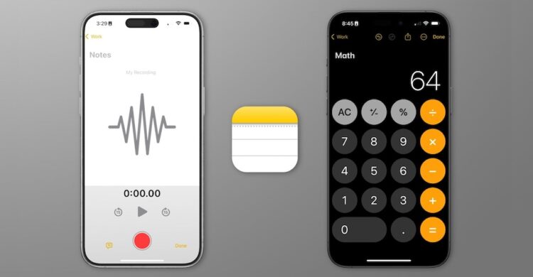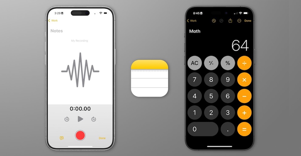 นอกจากนี้ แอป Notes เวอร์ชันใหม่ ยังมีฟีเจอร์ Math Notes ซึ่งมีการเชื่อมโยงกับแอป Calculator เพื่อช่วยให้ผู้ใช้งานแอป Notes สามารถเรียกเครื่องคิดเลขได้ทันที โดยมีแนวโน้มที่จะสนับสนุนการแสดงสัญกรณ์ทางคณิตศาสตร์ที่เหมาะสม ซึ่งเป็นการจดชวเลขที่จำเป็นสำหรับการใช้งานด้านวิชาการ วิทยาศาสตร์ และวิศวกรรมศาสตร์