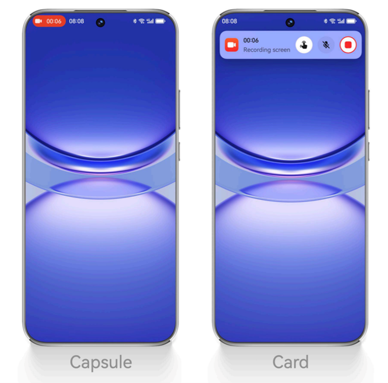 • แบบ Capsule: เมื่อแอพสลับไปที่หน้าจอหลักหรือแอพอื่น แคปซูลจะปรากฏในแถบสถานะ โดยให้ข้อมูลสรุปแบบเรียลไทม์ของงานปัจจุบัน