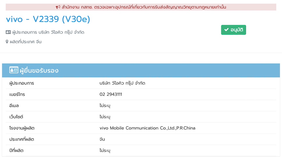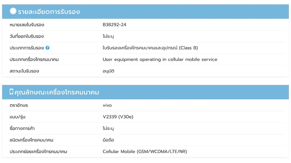 vivo กำลังจะเปิดตัวสมาร์ทโฟน vivo V30e ในอินเดีย วันที่ 2 พฤษภาคมนี้ และจะเข้ามาทำตลาดในไทยด้วยเช่นกัน หลังจากพบว่าได้ผ่านการรับรองจาก กสทช. แล้ว