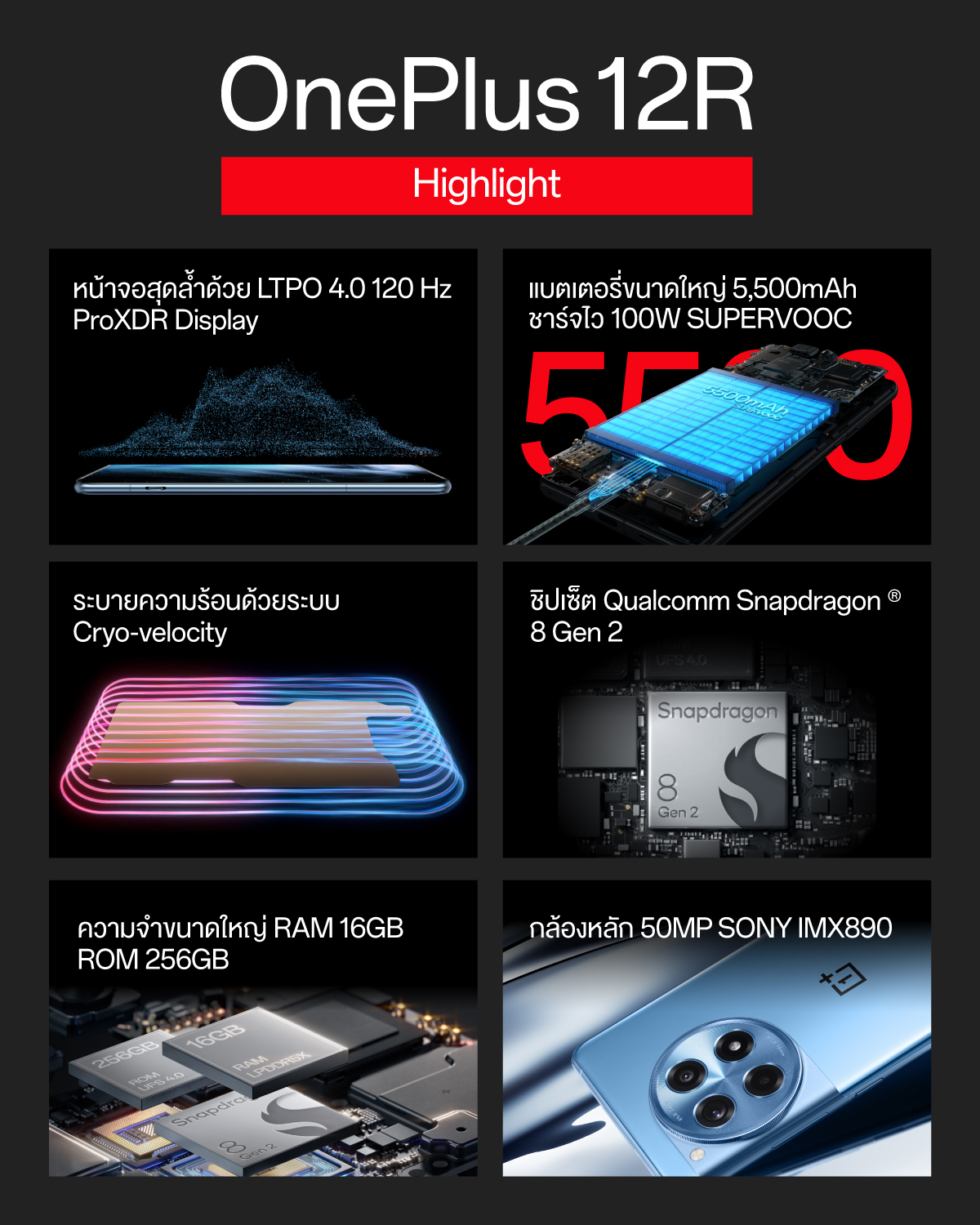 แบรนด์เทคโนโลยีชั้นนำ OnePlus ได้เปิดตัวในประเทศไทยเป็นที่เรียบร้อยสำหรับ OnePlus 12R หนึ่งในสมาชิก OnePlus 12 Series ที่ผสานประสิทธิภาพเข้ากับ OnePlus 12 เพื่อพิสูจน์ว่าสมาร์ทโฟนไม่จำเป็นต้องเป็น “Plus” “Pro” หรือ “Ultra” ก็สามารถมอบสเปก ฮาร์ดแวร์และประสบการณ์ซอฟต์แวร์ที่ดีที่สุดให้กับผู้ใช้ได้ พร้อมสิทธิพิเศษช่วง 5.5 นี้สำหรับลูกค้าช่องทางออนไลน์เท่านั้น