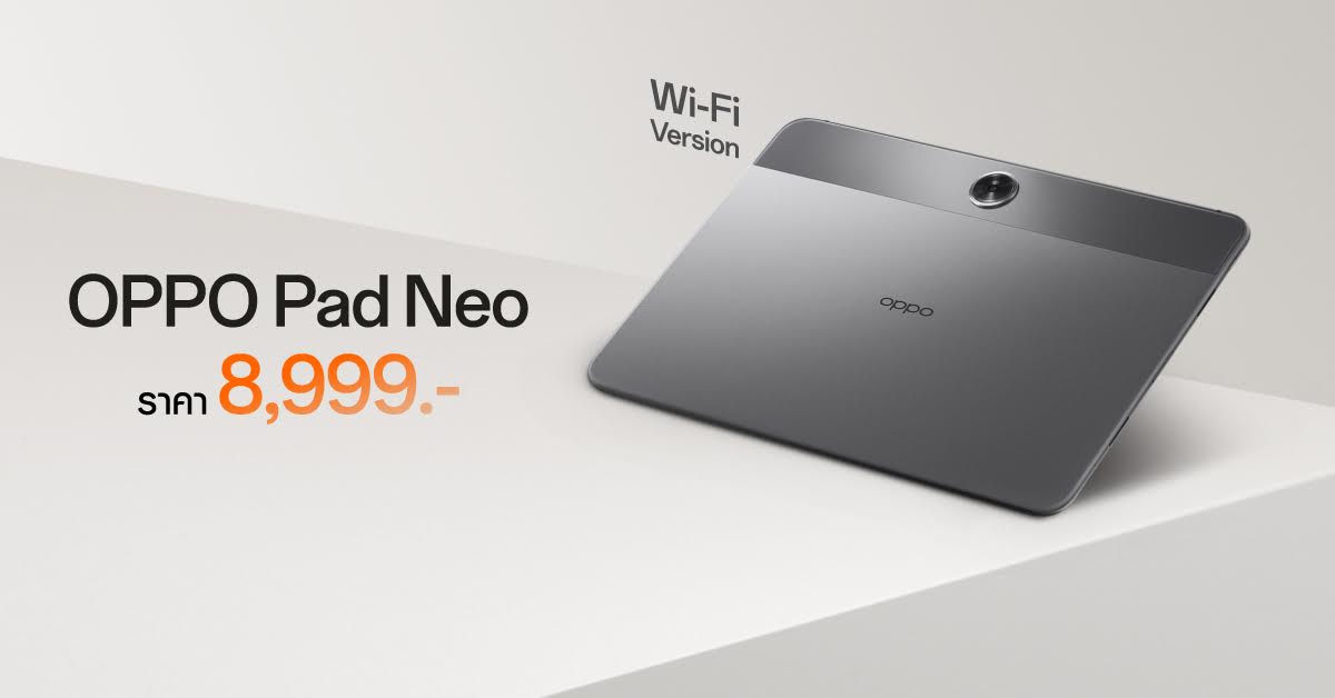 ออปโป้เตรียมวางจำหน่าย OPPO Pad Neo Wi-Fi Version แท็บเล็ตให้คุณจอยทุกความสนุกเหนือระดับ จัดเต็มทั้งหน้าจอขนาดใหญ่ 11.4 นิ้ว และลำโพง 4 ตัว จัดเต็มทุกอรรถรสภาพและเสียงด้วยหน้าจอใหญ่และระบบลำโพงคุณภาพสูง มาพร้อมหน้าจอแสดงผลถนอมสายตา 2.4K ขนาดใหญ่ถึง 11.4 นิ้วตัวแรกในอุตสาหกรรมให้ความละเอียดสูง ในขณะที่ปล่อยแสงสีฟ้าต่ำทำให้สามารถอ่านหรือรับชมเนื้อหาได้อย่างสบายตา แสดงผลภาพในอัตราส่วนภาพ 7:5 ขนาดคล้ายกับหน้าจอ PC, กระดาษ A4 หรือหนังสือ ทำให้สามารถใช้งานได้อย่างคุ้นเคย โดยไม่ต้องปรับขนาดเนื้อหาด้วยตนเองอีกต่อไป เมื่อดูในด้านดีไซน์ OPPO Pad Neo ให้ความรู้สึกเรียบหรูด้วยสีเทา (Space Grey) ตัวเครื่องเพรียวบาง โดยมีความบางเพียง 6.89 มม. และน้ำหนักเบาเพียง 538 กรัม ทำให้สามารถพกพาสะดวกตลอดวัน ไม่ว่าจะเล่นเกมหรือดูหนังบน OPPO Pad Neo ก็เต็มอรรถรสจุใจด้วยลำโพงสเตอริโอ 4 ตัวมาพร้อมระบบเสียง Dolby Atmos® มอบประสบการณ์เสียงหลายมิติสมจริงรอบด้านและรองรับเสียง Hi-Res จอยไปกับความบันเทิงตลอดวันอย่างไร้กังวลด้วยแบตเตอรี่ขนาดใหญ่ 8,000mAh รองรับการชาร์จไว 33W SUPERVOOC