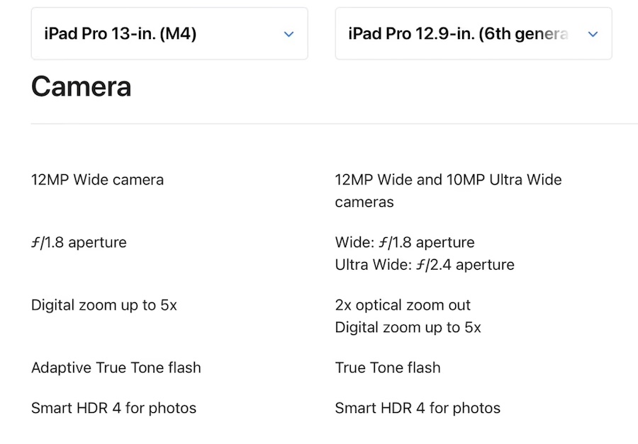 iPad Pro รุ่นชิป M4 ไม่มีกล้อง Ultra Wide 10 ล้านพิกเซล เหลือไว้แต่กล้องหลัก 12 ล้านพิกเซล ที่มาพร้อมแฟลช Adaptive True Tone ช่วยให้สแกนเอกสารได้ดียิ่งขึ้น