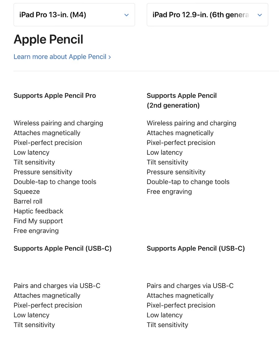 นอกจากนี้ เจ้าของ iPad Pro รุ่นเก่าที่มี Apple Pencil รุ่นที่ 2 ไม่สามารถนำมาใช้กับ iPad Pro รุ่นใหม่ได้ เพราะรองรับเฉพาะ Apple Pencil Pro และ Apple Pencil USB-C เท่านั้น