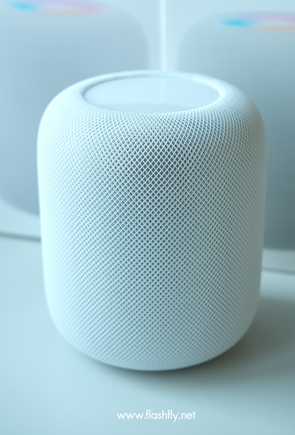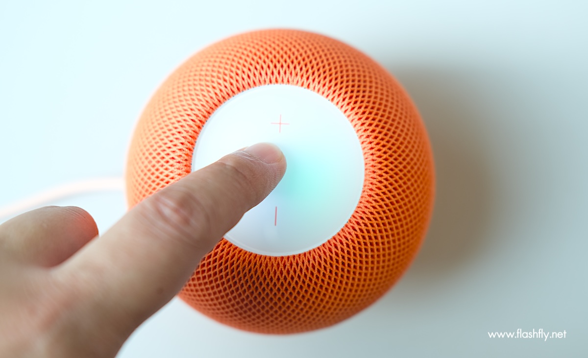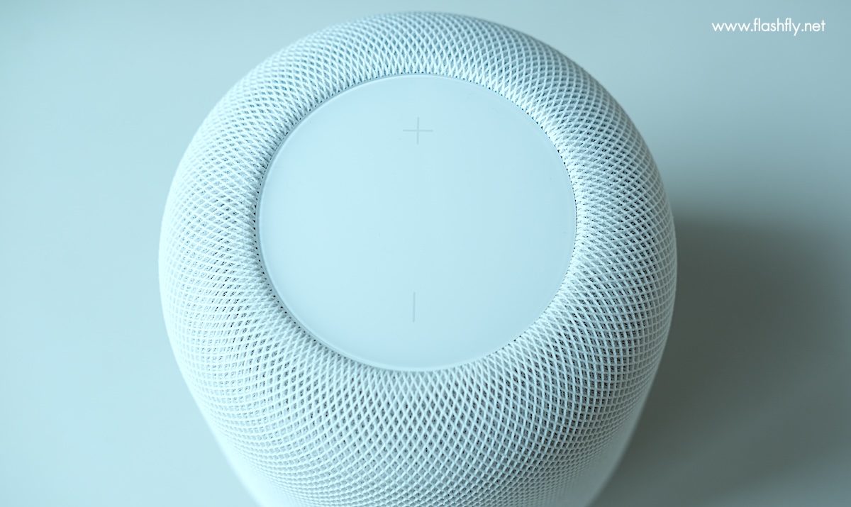 ด้านบนของลำโพง เป็นพื้นผิวสัมผัสวงกลม พร้อมแบ็คไลท์ที่ให้ความสว่างจนชิดขอบ ทำให้ดูสวยงามกว่ารุ่นแรก สามารถการแตะหนึ่งครั้งเพื่อเล่น/หยุดพัก, แตะสองครั้งเพื่อข้ามไปข้างหน้า, แตะสามครั้งเพื่อข้ามไปข้างหลัง, แตะค้างไว้เพื่อเรียก Siri, แตะหรือแตะค้างไว้ที่เครื่องหมาย + หรือ – เพื่อเพิ่มหรือลดระดับเสียง
