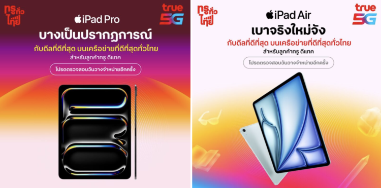 ทรู 5G เตรียมวางจำหน่าย iPad Proใหม่ ทรงพลังยิ่งกว่าเดิมด้วยชิป M4 พร้อม iPad Air เบาจริงใหม่จัง ทั้งรุ่น 11 นิ้ว และ 13 นิ้ว