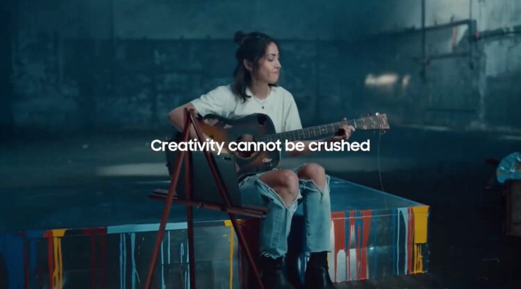 โฆษณาใหม่ของ Samsung ทำออกมาเพื่อโปรโมทแท็บเล็ต Galaxy Tab S9 Series โดยใช้ฉากที่ดูเหมือนกับเป็นภาคต่อของโฆษณา Crush หลังจากที่สิ่งของต่างๆ ถูกบดจนแตกละเอียด ยังเหลือกีตาร์ที่ได้รับความเสียหาย แต่ยังพอเล่นได้ ทำให้นักดนตรีหญิงคนหนึ่งหยิบขึ้นมาดีด ก่อนจะขึ้นข้อความว่า “ความคิดสร้างสรรค์ไม่สามารถบดขยี้ได้”
