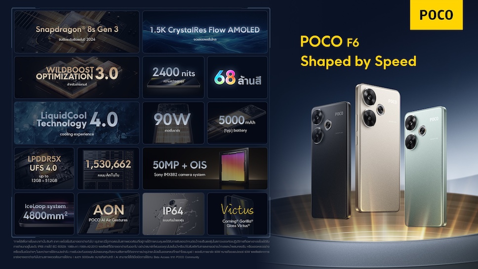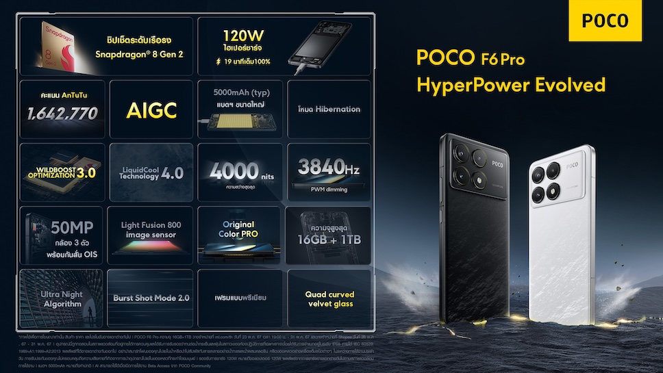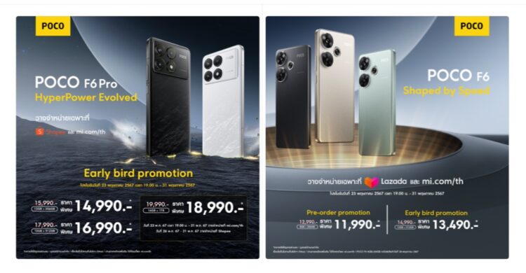 POCO F6 และ F6 Pro เปิดรับจองในไทยแล้ว ราคาเริ่มต้น 11,990 บาท