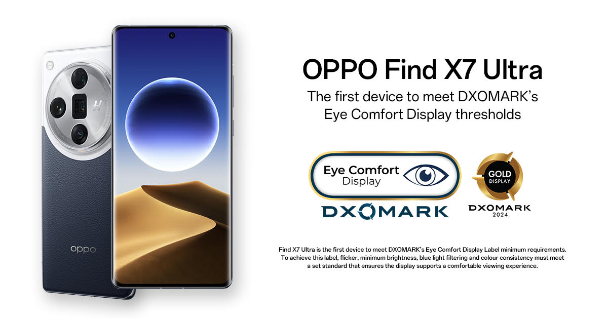 OPPO Find X7 Ultra สุดยอดสมาร์ตโฟนระดับแฟลกชิปได้รับรางวัล Gold Display Label ของ DXOMARK และเป็นอุปกรณ์แรกที่ได้รับ Eye Comfort Display Label จากแนวทางองค์รวมในด้านคุณภาพหน้าจอและความสบายตา