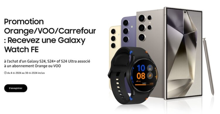 เว็บไซต์ทางการของ Samsung ในเบลเยียม จัดโปรโมชันแจก Galaxy Watch FE สำหรับใครก็ตามที่ซื้อสมาร์ทโฟนเรือธง Galaxy S24, Galaxy S24+ หรือ Galaxy S24 Ultra ภายในวันที่ 30 มิถุนายนนี้