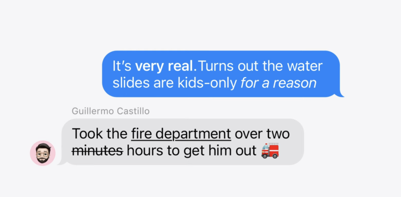 แอป Messages ใน iOS 18 มีฟีเจอร์ Scheduled สามารถส่งข้อความภายหลังตามเวลาที่กำหนดไว้ และยังมีตัวเลือกให้กับข้อความเพื่อเพิ่มความหนา ตัวเอียง ขีดเส้นใต้ หรือ ขีดทับ และเพิ่มความน่าสนใจด้วยการแนะนำเอฟเฟกต์ข้อความใหม่สำหรับบางคำหรือวลี