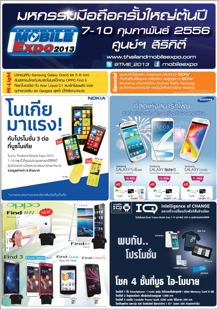 มาแล้วโปรโมชั่นชุดแรก ในงาน Thailand Mobile Expo 2013 วันที่ 7-10 กุมภาพันธ์นี้