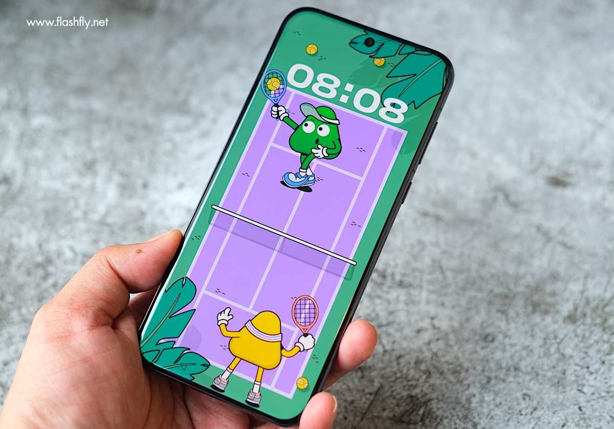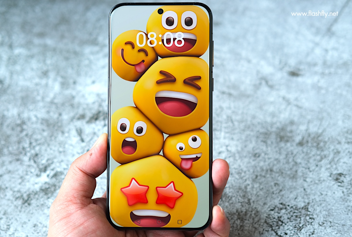 มุมมองด้านหน้าเต็มไปด้วยพื้นที่ของจอแสดงผล ที่มีขอบหน้าจอบางเฉียบ พร้อมเจาะหลุมเล็กๆ ไว้ตรงกึ่งกลางเพื่อซ่อนกล้องหน้า และหน้าจอยังได้รับการป้องกันด้วย Crystal Armour Kunlun Glass กระจก Kunlun Glass รุ่นที่ 2 ที่ได้รับการปรับปรุงให้มีความทนทานมากขึ้น