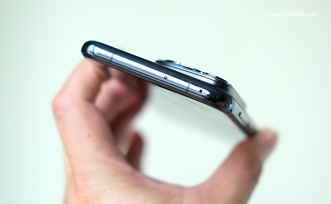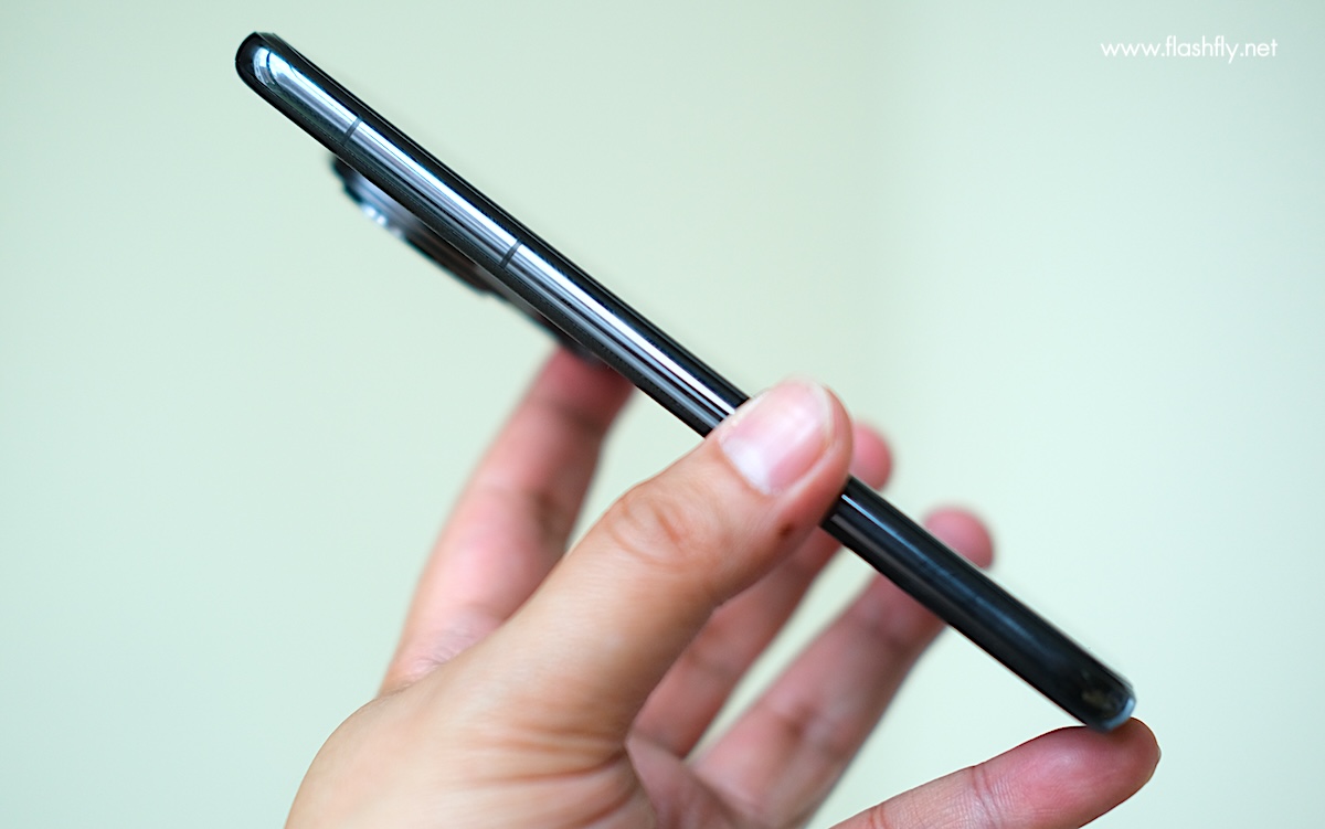 ขอบด้านข้างมีความบาง 8.4 มิลลิเมตร มาพร้อมปุ่มปรับระดับเสียงที่รวมปุ่มเพิ่มและลดความดังไว้เป็นแถวเดียวกัน ถัดลงมาพบปุ่มเพาเวอร์ที่มีขีดสีแดง ช่วยให้สังเกตเห็นได้ง่าย
