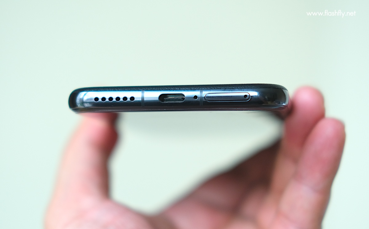 ด้านล่างประกอบด้วยถาดใส่ซิมการ์ด, ไมโครโฟนตัวหลัก, พอร์ตเชื่อมต่อ USB Type-C (USB 3.1 GEN1) และลำโพง