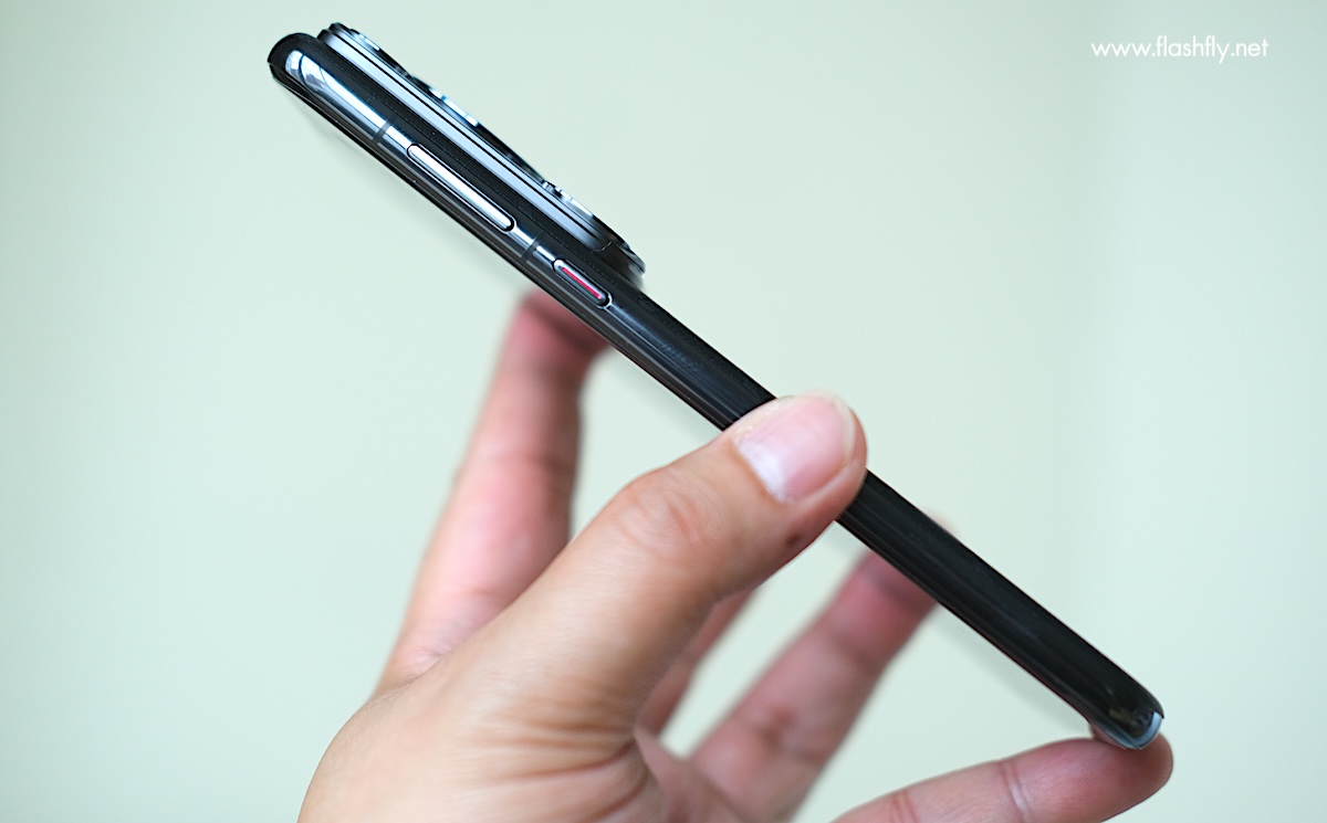 HUAWEI Pura 70 Ultra สร้างความโดดเด่นด้วยฝาหลังแบบหนังวีแกน มีให้เลือก 2 สี ได้แก่ สีเขียว และอย่างที่เห็น ทีมงาน @Flashfly ได้รับสีดำมารีวิว แต่รายละเอียดของดีไซน์ไม่ได้มีความแตกต่างกัน ฝาหลังของ HUAWEI Pura 70 Ultra แสดงให้เห็นถึงล้ำหน้าด้านแฟชั่นผสานกับความหรูหรา ด้วยพื้นผิวลายนูนอันวิจิตรงดงามที่ได้รับแรงบันดาลใจมาจากจินตนาการอันไม่มีที่สิ้นสุดของดวงดาว เกิดเป็นลวดลายที่สวยงามของดวงดาว ให้ความรู้สึกมหัศจรรย์ และความเป็นไปได้ที่กระตุ้นให้เราไปให้ไกลถึงท้องฟ้า ซึ่งเป็นความฝันที่เกินขีดจำกัดของเรา แต่นี่คือจิตวิญญาณที่แท้จริงของ Pura Series