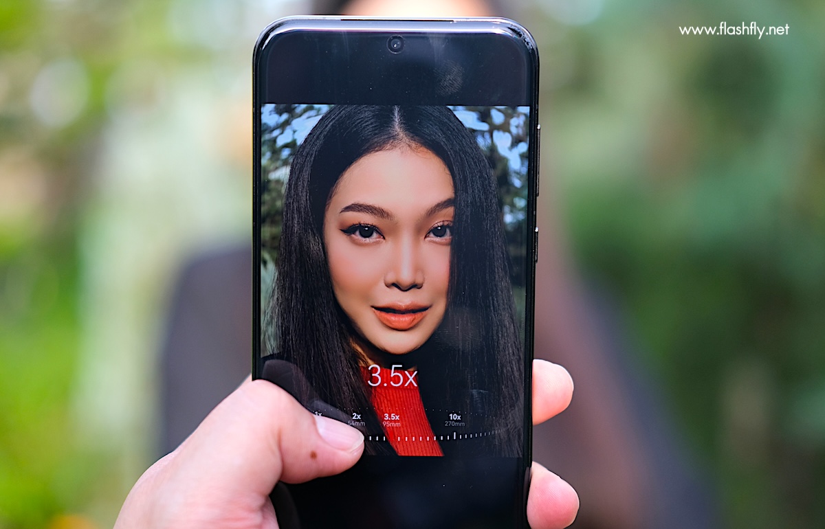 โหมด Photo รองรับการซูมตั้งแต่ระยะ Wide ซึ่งเป็นการเปิดใช้งานกล้อง Ultra-Wide จากนั้นสามารถเลื่อนเพื่อซูมได้สูงสุด 100 เท่า แต่การซูมแบบออปติคัลจะสูงสุดที่ 3.5 เท่า เมื่อแตะที่ลูกศรชึ้นขึ้น (ใต้ปุ่มชัตเตอร์) จะพบกับเครื่องมือเพิ่มเติม เช่น เปลี่ยนอัตราส่วนภาพถ่าย, ใช้งานแฟลช, เลือกสไตล์ XMAGE, Master AI, Moving Picture, Filter, Assistive Grid และ ตั้งค่ากล้อง