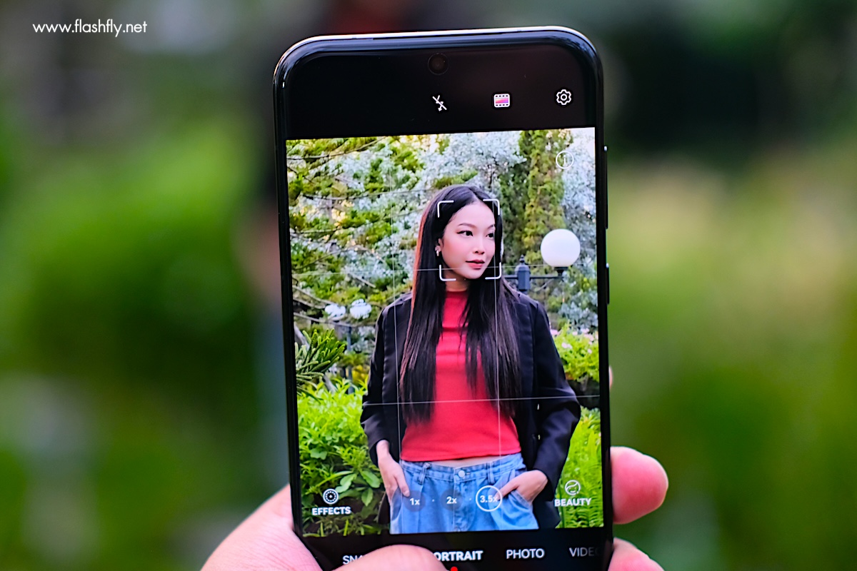 โหมด Portrait มีเอฟเฟกต์โบเก้สำหรับละลายฉากหลังให้เลือกหลายแบบ สามารถปรับ Beauty ได้ 10 ระดับ และรองรับการซูมที่ระยะ 1 / 2 / 3.5 เท่า