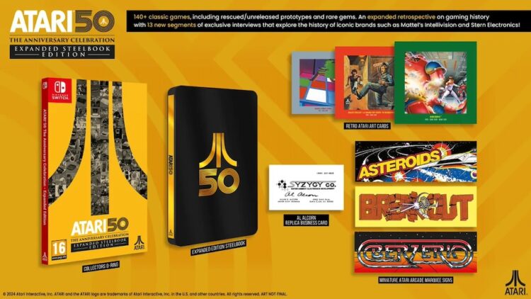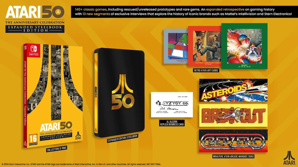 Atari 50: the Anniversary Celebration Expanded Edition สำหรับ Nintendo Switch และ PS5 จะมีเวอร์ชัน Physical ให้สะสมด้วย ซึ่งมาพร้อมกล่องเหล็ก (Steelbook) และของที่ระลึกสุดพิเศษ โดยจะเริ่มวางจำหน่ายวันที่ 25 ตุลาคมนี้ สำหรับ PC, Nintendo Switch, Xbox One, Xbox Series X|S, PS4 และ PS5 ก่อนขยายไปยัง Atari VCS ในช่วงปลายปี 2024