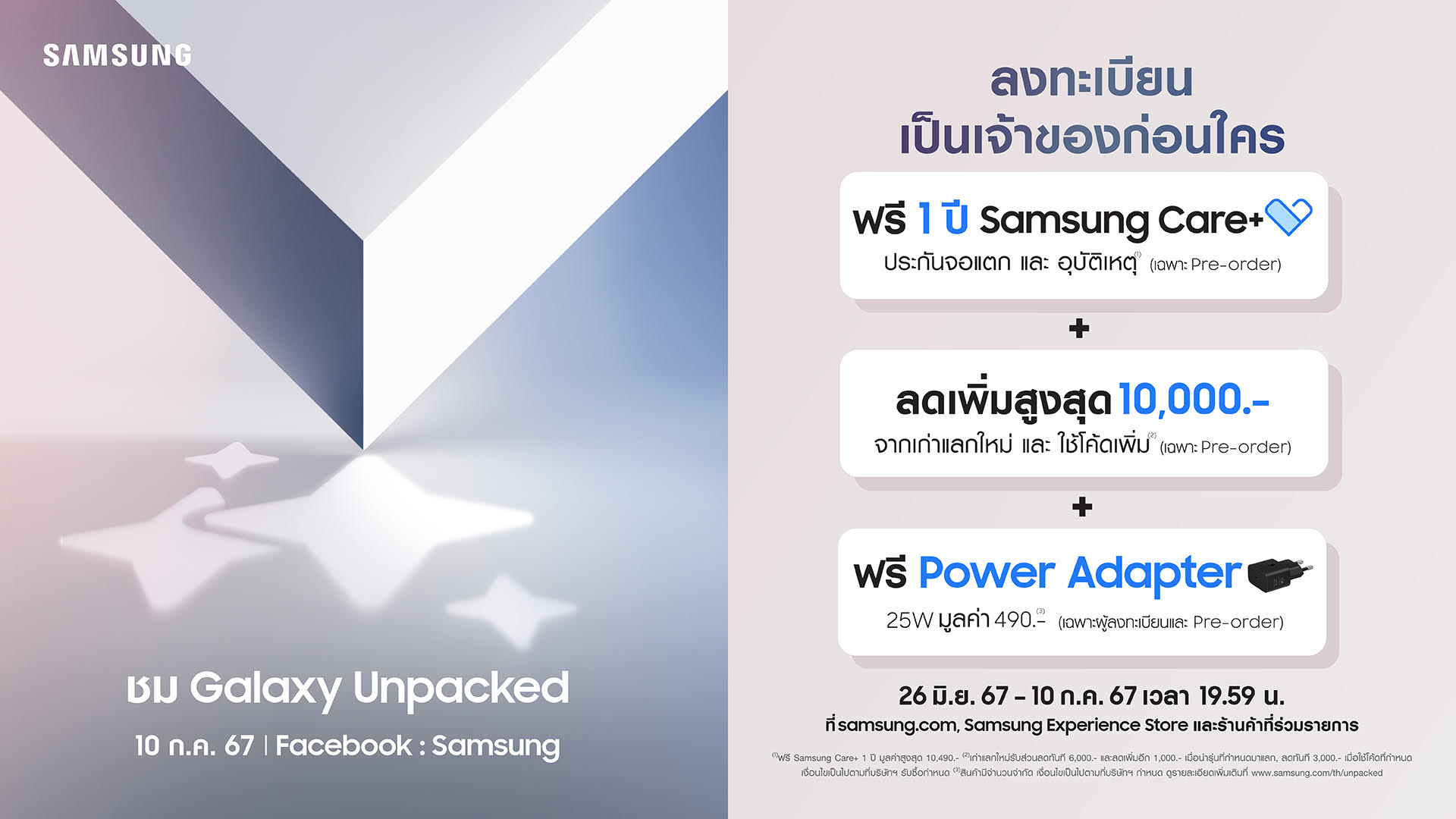 ลงทะเบียนได้แล้วที่ https://smsng.store/Samsung-Galaxy-Handraiser ตั้งแต่วันที่ 26 มิ.ย. – 10 ก.ค. 67 เวลา 19.59 น. เท่านั้น! #SamsungUnpacked #Samsung