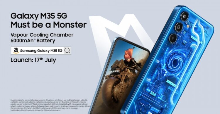 Samsung เตรียมเปิดตัวสมาร์ทโฟน Galaxy M35 อย่างทางการในประเทศอินเดีย วันที่ 17 กรกฎาคมนี้ ผ่านร้านค้าออนไลน์รายใหญ่ Amazon ชูจุดเด่นที่แบตเตอรี่ความจุสูง 6000mAh และมีระบบระบายความร้อน Vapor Chamber Cooling