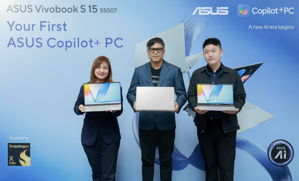 เอซุส (ประเทศไทย) นำโดยคุณวิจิตราหิรัญญการ, ผู้จัดการฝ่ายช่องทางการจัดจำหน่ายคอนซูมเมอร์ (ซ้าย), มร. เควินหวัง, ผู้จัดการฝ่ายผลิตภัณฑ์คอนซูมเมอร์ (ขวา) และดร. นนท์จินดาพล, ผู้อำนวยการแผนกพัฒนาธุรกิจประเทศไทยบริษัทควอลคอมม์ (กลาง) ร่วมเปิดตัวโน้ตบุ๊ก ASUS Vivobook S 15 (S5507) พร้อมเริ่มวางจำหน่ายในประเทศไทยแล้ว ในราคา 46,990 บาท
