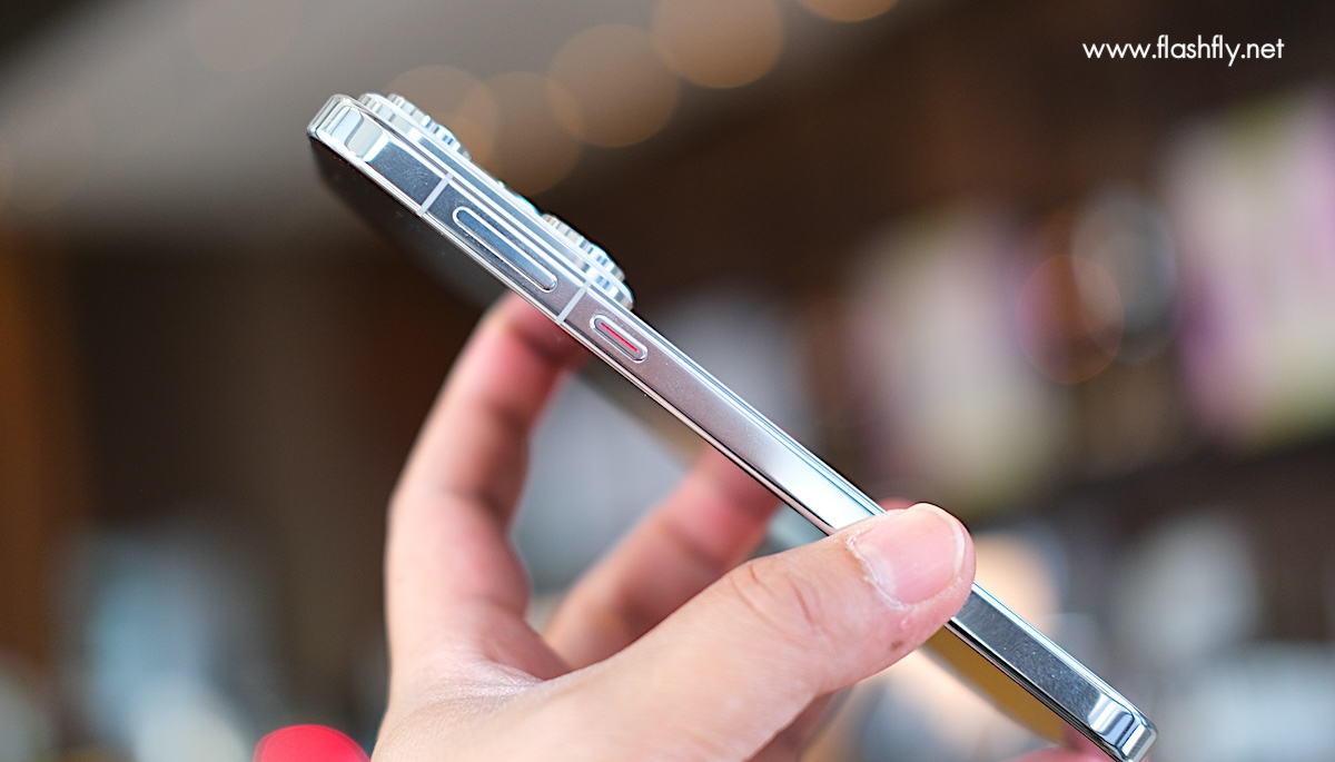 ปุ่มปรับระดับเสียงที่รวมปุ่มเพิ่มและลดความดังไว้เป็นแถวเดียวกัน ติดตั้งอยู่เหนือปุ่มเพาเวอร์ที่มีขีดสีแดง ช่วยให้สังเกตเห็นได้ง่าย