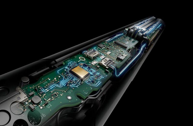 เครื่องหนีบผม Dyson Airstrait™ ใช้มอเตอร์ Hyperdymium ที่ได้รับการพัฒนาด้านวิศวกรรมมาโดยพิเศษ เพื่อนำมาปรับใช้ให้กลายเป็นหัวใจสำคัญของเทคโนโลยีการดูแลเส้นผมของ Dyson โดยมอเตอร์นี้มีขนาดเล็ก น้ำหนักเบา แต่ทรงพลังมากพอที่จะสร้างกระแสลมเพื่อเป่าแห้งและรีดผมให้เรียบตรงได้ในเวลาเดียวกัน ด้วยใบพัด 13 แฉกหมุนพัดเร็วถึง 106,000 รอบต่อนาที ซึ่งสร้างกระแสลมได้กว่า 11.9 ลิตรต่อวินาที และสร้างแรงดันอากาศมากถึง 3,500 กิโลปาสกาล ซึ่งเพียงพอสำหรับการยืดผมพร้อมเป่าแห้ง และด้วยมอเตอร์ที่มีขนาดเพียง 27 มิลลิเมตร จึงเล็กพอที่จะใส่ไปในด้ามจับและช่วยผลิตกระแสลมที่ทรงพลังให้แก่เครื่องหนีบผม