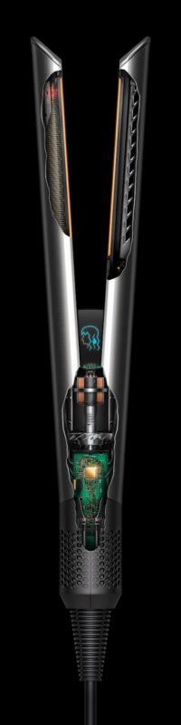 เครื่องหนีบผม Dyson Airstrait™ ได้รับการออกแบบให้เหมาะกับการใช้ในทุกสภาพเส้นผม ช่วยในการจัดแต่งผมให้ตรงสวย พร้อมดูมีน้ำหนัก พลิ้วไหวได้อย่างเป็นธรรมชาติ แต่ยังคงความแข็งแรงและดูสุขภาพดีอยู่เสมอ[2] โดยแกนหนีบผมทั้งสองด้านจะหนีบรับเส้นผม พร้อมปล่อยกระแสลมจากใบพัดแรงดันสูงที่บังคับทิศทางลมให้ตรงไปสู่เส้นผมภายในแกนหนีบด้วยองศาที่แม่นยำ เพื่อเป่าแห้งและยืดผมเรียบตรงในเวลาเดียวกันด้วยเครื่องหนีบผมเพียงเครื่องเดียว