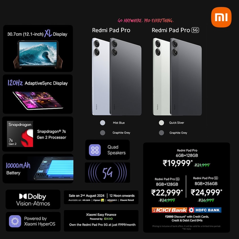 ทั้งนี้ Redmi Pad Pro 5G มีราคาเริ่มต้น 24,999 รูปี หรือราว 10,790 บาท สำหรับรุ่น 128GB และราคา 26,999 รูปี หรือราว 11,590 บาท สำหรับรุ่น 256GB
