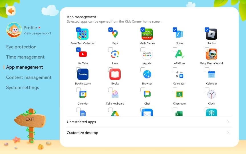 แอป Kids Corner ในการจัดการเวลาหน้าจอและจัดการเลือกแอปที่อนุญาตให้เข้าถึง