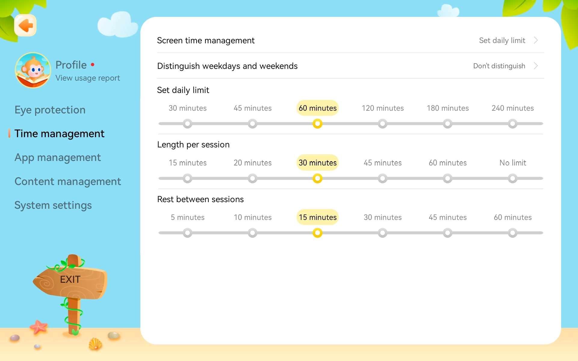 ควบคุมการใช้งานโดยผู้ปกครอง: ผู้ปกครองสามารถจัดการเวลาหน้าจอ แอป และเนื้อหาที่เด็ก ๆ สามารถเข้าถึงได้ผ่าน Kids Corner สามารถตั้งค่าการจํากัดเวลาได้หลายครั้งตลอดทั้งวัน ตัวอย่างเช่น ผู้ปกครองสามารถกำหนดเวลาที่อนุญาตให้ใช้งานได้20 นาที หลังเลิกเรียน ช่วง 17.00 – 18.00 น. หรือหลังมื้อค่ำระหว่าง 19.00 – 21.00 น. ผู้ปกครองสามารถกําหนดข้อจํากัดที่แตกต่างกันสําหรับวันธรรมดาและวันหยุดสุดสัปดาห์เพื่อสร้างความสมดุลระหว่างเวลาเรียนและเวลาเล่น ผู้ปกครองยังสามารถเลือกแอปที่อนุญาตให้บุตรหลานสามารถเข้าถึงได้ผ่านการจัดการแอป รวมถึงวิดีโอและรูปภาพที่บุตรหลานสามารถดูได้ผ่านการจัดการเนื้อหา