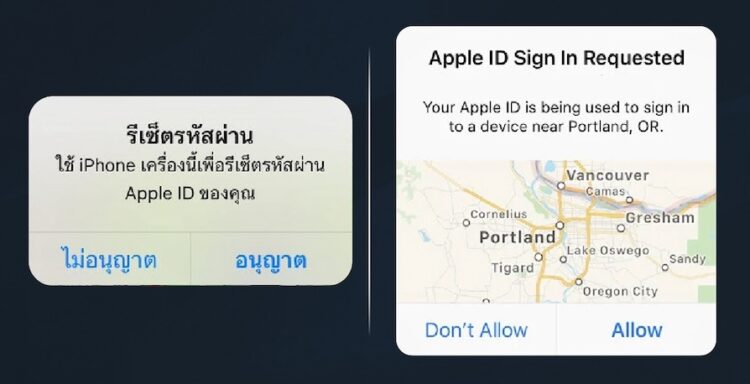 ผู้ใช้งาน iPhone จะได้รับข้อความ “รีเซ็ตรหัสผ่าน ใช้ iPhone เครื่องนี้เพื่อรีเซ็ทรหัสผ่าน Apple ID” กรณีที่มีการลงชื่อเข้าใช้ด้วยบัญชี Apple ID จากอุปกรณ์อื่น ที่ไม่ได้ใช้งานประจำ ดังนั้น ถ้าหากได้รับข้อความดังกล่าว โดยที่ผู้ใช้งานไม่ได้มีการเข้าสู่ระบบในอุปกรณ์อื่นๆ ด้วยบัญชี Apple ID อาจหมายถึงมีมิจฉาชีพหรือบุคคลอื่นพยายามแฮกบัญชีของผู้ใช้งาน จึงไม่ควรกดอนุญาตเด็ดขาด