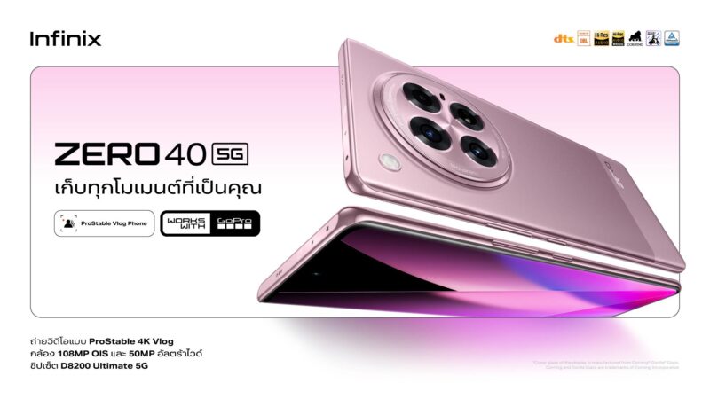 เปิดราคาไทย Infinix ZERO 40 5G จัดเต็มด้วยกล้อง4K พร้อม Vlog แบบมือโปรไปกับ ProStable video ในราคา 14,999 บาท