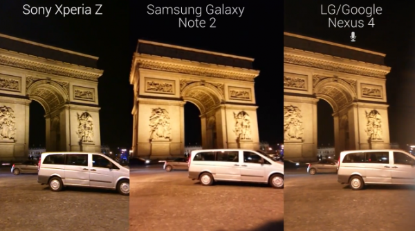 FrAndroidTube ที่ทำการทดสอบถ่ายคลิปวิดีโิอตอนกลางด้วย Xperia Z ,Galaxy Note II และ Nexus 4 พร้อมกันทั้ง 3 เครื่องในเวลาเดียวกัน มาชมกันว่ารุ่นไหนจะให้คุณภาพที่ดีกว่าทั้งภาพและเสียง