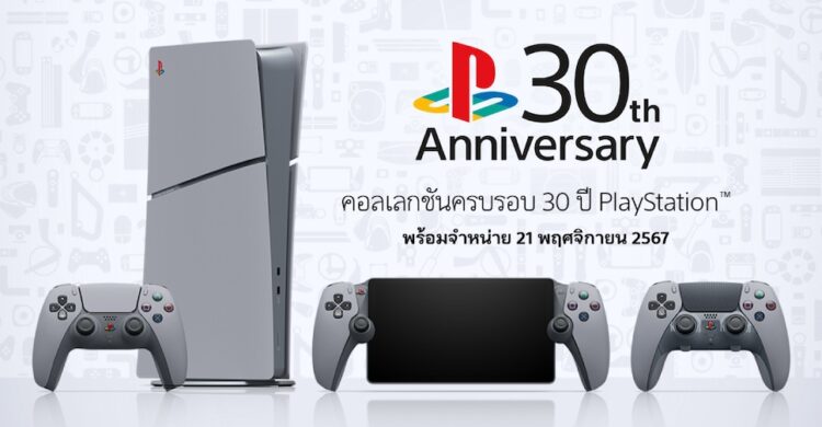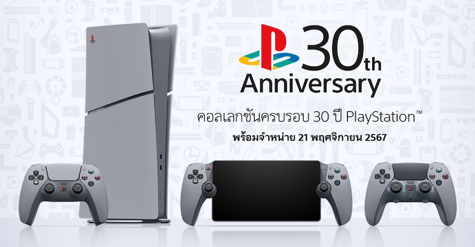 กลุ่มผลิตภัณฑ์รุ่นพิเศษ PlayStation 30th Anniversary Collection พร้อมให้สั่งซื้อล่วงหน้าในไทยแล้ววันนี้!! ที่ร้านค้า Sony Store สาขาเอ็มควอเธียร์ เท่านั้น และ ร้านตัวแทนจำหน่ายที่ร่วมรายการ โดยจะเริ่มจัดส่งและวางจำหน่าย ตั้งแต่วันที่ 21 พฤจิกายน 2567 เป็นต้นไป
