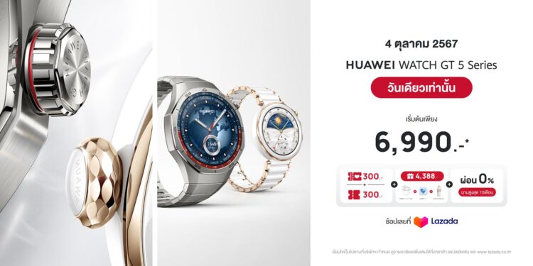 ห้ามพลาด! โปรโมชันสุดคุ้มจาก Lazada ที่มาพร้อมข้อเสนอสุดพิเศษเฉพาะวันที่ 4 ตุลาคม 2567 เท่านั้น! สินค้ารุ่น HUAWEI WATCH GT 5 Series เริ่มต้นเพียง 6,990 บาท พร้อมรับสิทธิประโยชน์เพิ่มเติมมากมาย ได้แก่: