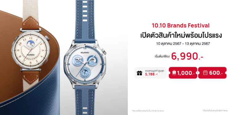 เตรียมตัวให้พร้อมกับโปรโมชันที่ทุกคนรอคอยในวันที่ 10.10Brands Festival ที่ Shopee สำหรับนาฬิกาอัจฉริยะ HUAWEI WATCH GT 5 Series ด้วยราคาสุดพิเศษเริ่มต้นเพียง 6,990 บาท พร้อมส่วนลดและของแถมมากมายผ่านแพลตฟอร์ม Shopee ให้คุณได้เป็นเจ้าของสมาร์ทวอทช์หัวเว่ยสุดล้ำได้อย่างง่ายดาย