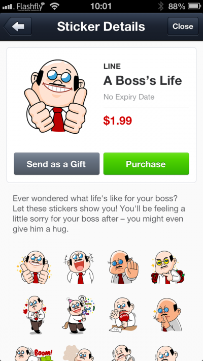 วันนี้ LINE ได้ฉลองวันวาเลนไทน์ด้วยการเปิดตัวและวางจำหน่ายสติ๊กเกอร์ใหม่อีก 4 แบบดังนี้ A Boss’s Life,Mushroom Garden “Coming of Springu”,Akubigirl และ Kamonohashikamo โดยจำหน่ายในราคา 1.99$ เช่นเคย สามารถเป็นเจ้าของได้วันนี้ที่ Sticker Shop ทั้งบน iPhone และ Android