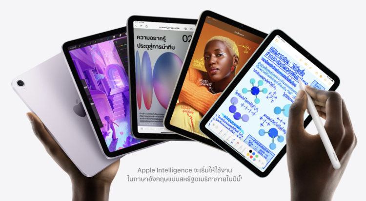 คุณสมบัติชุดแรกของ Apple Intelligence จะพร้อมให้ใช้งานในภาษาอังกฤษแบบสหรัฐอเมริกาในเดือนนี้ผ่านการอัปเดตซอฟต์แวร์ iPadOS 18.1 ฟรี และใช้งานได้บน iPad พร้อมชิป A17 Pro หรือชิป M1 และใหม่กว่า Apple Intelligence จะมอบประสบการณ์ที่เพลิดเพลิน เป็นธรรมชาติ ใช้ง่าย และออกแบบมาเป็นพิเศษเพื่อช่วยผู้ใช้ทำสิ่งต่างๆ ที่สำคัญสำหรับแต่ละคน3