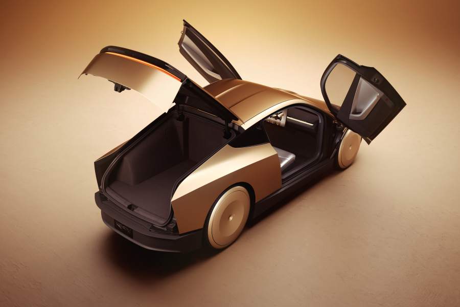 Robotaxi มาในตัวถังสีทอง ประตูเปิด-ปิดแบบปีกนก ห้องเก็บสัมภาระด้านท้ายขนาดใหญ่ ภายในมี 2 ที่นั่ง พร้อมจอแสดงผลขนาดใหญ่ สำหรับเลือกจุดหมายปลายทางที่ต้องการไป
