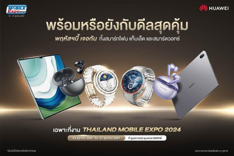 หัวเว่ย คอนซูมเมอร์ บิสสิเนส กรุ๊ป (ประเทศไทย) ขนทัพสินค้าเทคโนโลยีล้ำสมัยพร้อมดีลพิเศษบุกงาน Thailand Mobile Expo 2024 ซึ่งจะจัดขึ้นระหว่างวันที่ 24 ตุลาคม 2567 – 27 ตุลาคม 2567 ที่ศูนย์การประชุมแห่งชาติสิริกิติ์ โดยหัวเว่ยมาพร้อมกับโปรโมชันและดีลสุดคุ้มที่ไม่ควรพลาด ผู้ที่สนใจจะได้พบกับสินค้านวัตกรรมจากหัวเว่ยหลากหลายประเภท ไม่ว่าจะเป็นสมาร์ทโฟน แท็บเล็ต สมาร์ตวอทช์ และอุปกรณ์อัจฉริยะอื่น ๆ