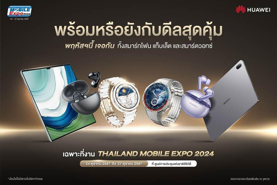 หากคุณเป็นผู้ที่สนใจในเทคโนโลยีใหม่ ๆ หรือกำลังมองหาดีลพิเศษในการซื้ออุปกรณ์อัจฉริยะ หัวเว่ยพร้อมที่จะตอบโจทย์ความต้องการของคุณในงานนี้ อย่าพลาดโอกาสเข้าชมและสัมผัสประสบการณ์จากผลิตภัณฑ์หัวเว่ยในงาน Thailand Mobile Expo 2024
