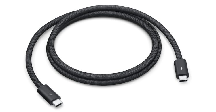 สาย Thunderbolt 5 (USB‑C) Pro มีความยาว 1 เมตร มาพร้อมดีไซน์แบบถักสีดำ ช่วยลดปัญหาสายพันกัน รองรับการถ่ายโอนข้อมูลผ่าน Thunderbolt 5 ด้วยความเร็วสูงสุด 120Gb/s อีกทั้งยังสนับสนุนการถ่ายโอนข้อมูลผ่าน Thunderbolt 3, Thunderbolt 4 และ USB 4 ด้วยความเร็วสูงสุด 40Gb/s, ถ่ายโอนข้อมูลผ่าน USB-3 ด้วยความเร็วสูงสุด 10Gb/s, ส่งสัญญาณภาพผ่าน DisplayPort 2.1 และชาร์จได้สูงสุดที่ 240W