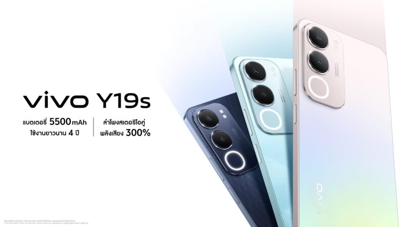ยกระดับการใช้งานอีกครั้ง! vivo แบรนด์สมาร์ตโฟนชั้นนำระดับโลก ประกาศเปิดตัว vivo Y19s อย่างเป็นทางการ โดยนำเสนอผ่านดีไซน์และตัวเลือก 3 สีใหม่ ได้แก่ สีเงิน (Pearl Silver), สีฟ้า (Glacier Blue) และสีดำ (Glossy Black) ที่จะมาช่วยอัปเกรดลุคของผู้ใช้งานชาวไทยทุกคนให้ดูทันสมัยและมีสไตล์กว่าที่เคย ครั้งนี้ vivo กลับมาพร้อมประสิทธิภาพการใช้งานและความทนทานอันเหนือชั้น ตอบโจทย์ทุกไลฟ์สไตล์ในราคาเอื้อมถึงง่าย มาร่วมจับจองเป็นเจ้าของสมาร์ตโฟนที่เข้าใจไลฟ์สไตล์ของคนรุ่นใหม่อย่างแท้จริงได้แล้ววันนี้ เริ่มต้นเพียง 4,399 บาท