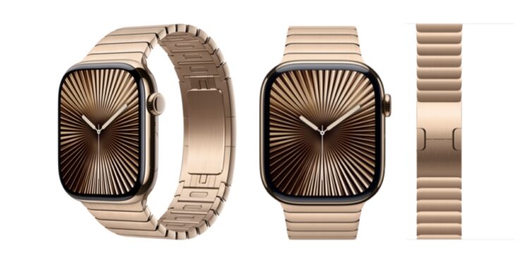 หลังจากวางจหน่ายสีธรรมชาติ และสีเทาสเลท ไปก่อนหน้านี้ ล่าสุดสาย Apple Watch แบบ Link Bracelet สีทอง ก็พร้อมวางจำหน่ายแล้ว ในราคา 14,500 บาท ทั้งขนาด 42 มม. และ 46 มม.