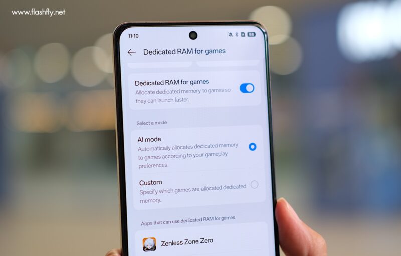 ขณะที่ AI Gaming Super Frame ทำให้กราฟิกเกมลื่นไหลมากยิ่งขึ้น ด้วยการปรับปรุงอัตราเฟรมได้สูงสุด 120 เฟรมต่อวินาที ราบรื่นขึ้น 2 เท่า เมื่อเทียบกับ 60 เฟรมต่อวินาที ซึ่งเห็นผลได้ชัดเจนเมื่อทดสอบกับเกม Honor of Kings, Free Fire และ PUBG