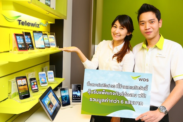 ดับบลิวดีเอส จัดแคมเปญสุดพิเศษ มอบความคุ้มค่าให้ลูกค้าที่ซื้อมือถือและแท็บเล็ต 3G ทุกรุ่น จากแบรนด์ Nokia, Samsung, Sony, Oppo และ HTC ที่ร้านเทเลวิซทุกสาขา ในเขตกรุงเทพฯ และปริมณฑล มีสิทธิ์ลุ้นรับรางวัลแพ็คเกจทัวร์ฮ่องกง ฟรี! จำนวน 10 รางวัล รางวัลละ 2 ที่นั่ง รวมมูลค่าทั้งสิ้นกว่า 600,000 บาท ตั้งแต่วันนี้ – 15 มีนาคม 2556 ประกาศรายชื่อผู้โชคดีในวันที่ 12 เมษายน 2556 ทาง www.mfa.ais.co.th สอบถามรายละเอียดเพิ่มเติมได้ที่เอไอเอส คอลล์ เซ็นเตอร์ 1175