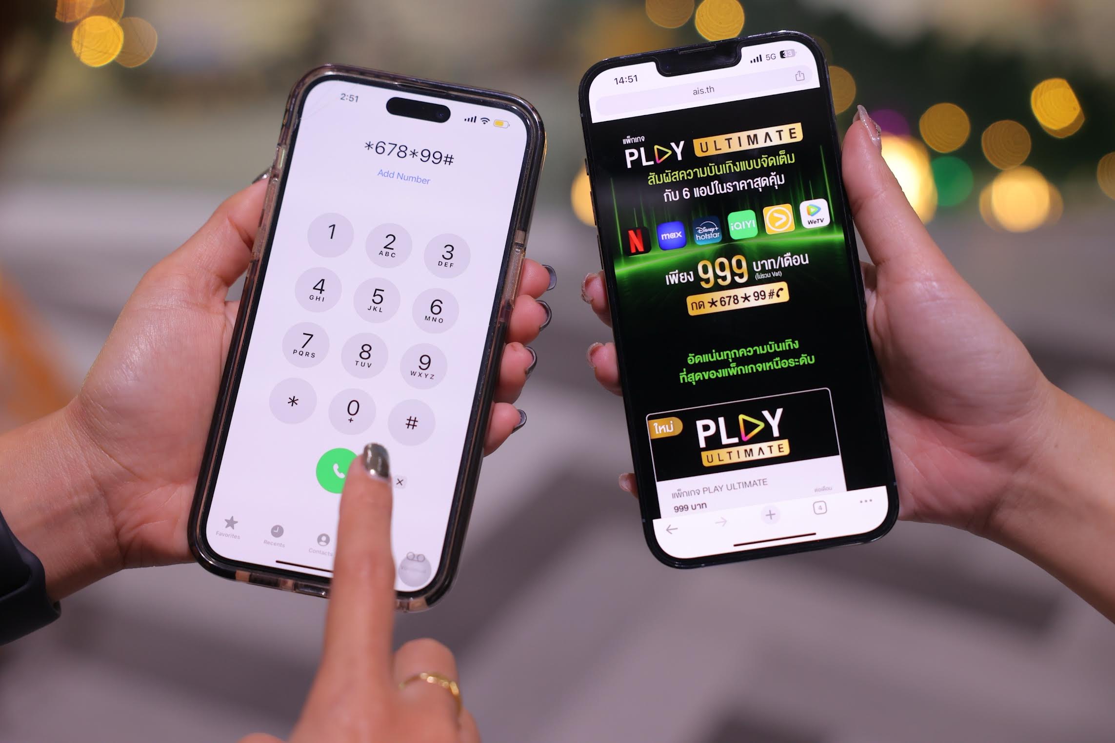 แน่นอนว่าการเปิดแพ็กเกจ PLAY ULTIMATE ในครั้งนี้นับเป็นการพลิกโฉมตลาด และเปิดประสบการณ์ครั้งใหม่ให้ลูกค้าได้เพลิดเพลินไปกับความหลากหลายของคอนเทนต์ทั้ง ภาพยนตร์ ซีรีย์ วาไรตี้ สารคดี แอนิเมชัน และอีกมากมาย รวมถึงวันนี้เรายังเปิดตัวแพ็กเกจต้อนรับลูกค้าใหม่ที่พร้อมส่งมอบที่สุดของความบันเทิงบนมือถือและในบ้านกับ 5G Max PLAY ULTIMATE สำหรับลูกค้าที่เปิดเบอร์ใหม่หรือย้ายค่ายเบอร์เดิม หรือเปลี่ยนจากระบบเติมเงินมาเป็นระบบรายเดือน กับสุดยอดแพ็กเกจที่รวมทุกความบันเทิงจาก PLAY ULTIMATE พร้อมค่าโทรและเน็ต 5G เต็มสปีด เริ่มต้นเพียง 1,299 บาทต่อเดือนเท่านั้น ได้ที่ AIS Shop ทุกสาขา ตั้งแต่วันที่ 13 ธันวาคม 2567 เป็นต้นไป