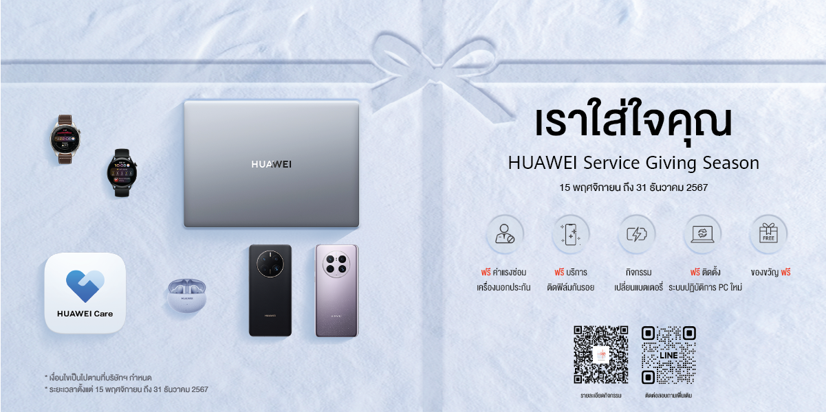 เริ่มแล้ววันนี้! แคมเปญสุดพิเศษส่งท้ายปี HUAWEI Service Giving Season มอบบริการที่ยอดเยี่ยมพร้อมสิทธิพิเศษแบบคุ้มค่า